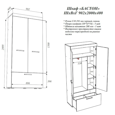 Шкаф Бастон (Эра) продается в интернет-магазине mebelin-himki.ru по цене 12 434 руб. Есть доставка по Химкам и Московской области. Возможность подъема на этаж и сборки уточняйте у менеджера по телефону 8(800)505-27-11.